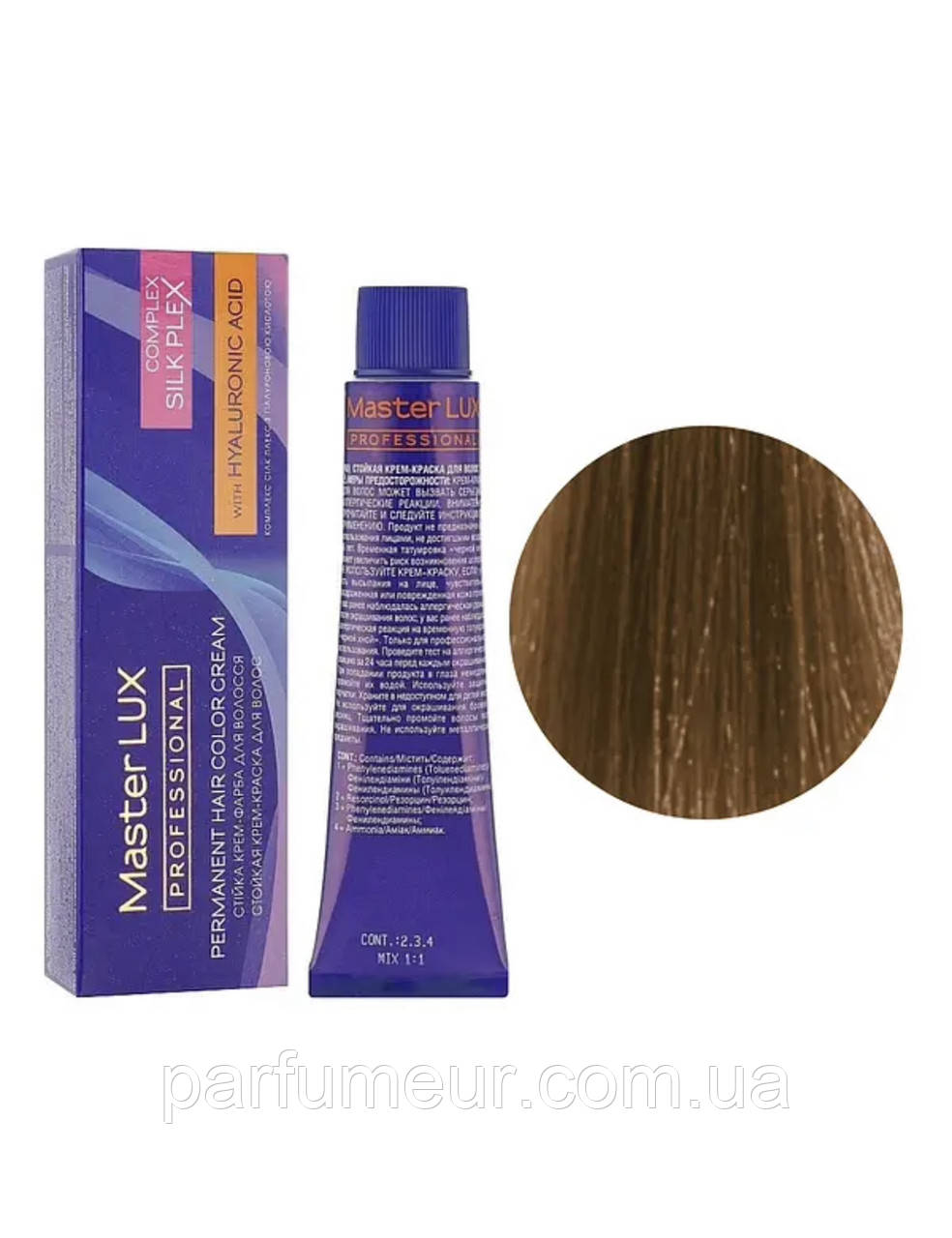 Фарба для волосся Master LUX professional з гіалуроновою кислотою та комплексом SILK PLEX придатна для стійкого, насиченого та сяйного відтінку локонів. Бережні компоненти SILK PLEX і гіалуронова кислота в поєднанні зі спеціальними барвниками забезпечують глибоке проникнення крем-фарбою в структуру волосся, зміцнюють і захищають його від пошкоджень під час процедури фарбування. Комплекс на основі протеїнів та амінокислот утворює щільну молекулярну сітку, що дає змогу досягти насиченого, стійкого кольору внаслідок фарбування. Гіалуронова кислота сприяє інтенсивному зволоженню та відновленню структури волосся, надає йому гладкість, еластичність і гарний блиск!
