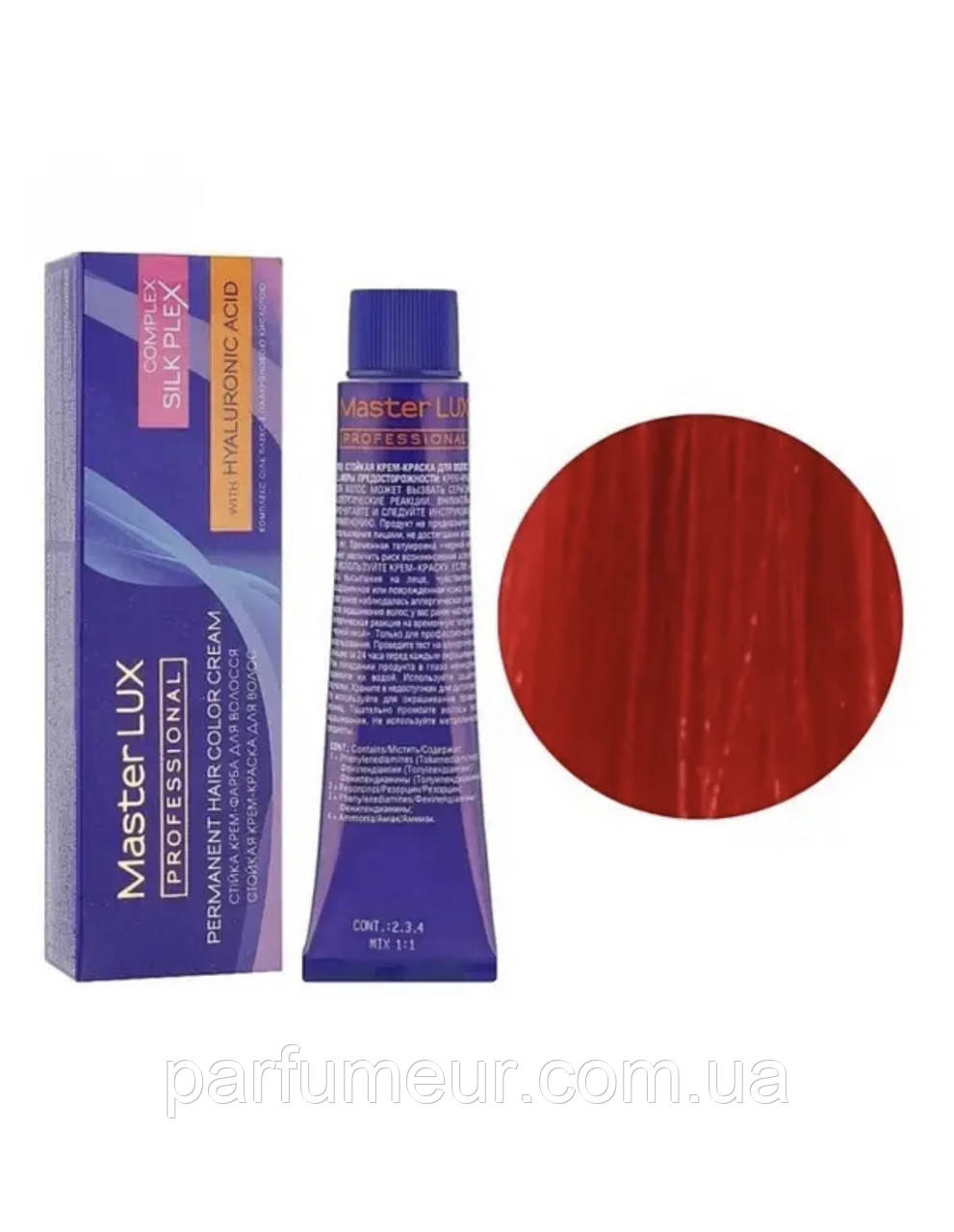 Фарба для волосся Master LUX professional з гіалуроновою кислотою та комплексом SILK PLEX придатна для стійкого, насиченого та сяйного відтінку локонів. Бережні компоненти SILK PLEX і гіалуронова кислота в поєднанні зі спеціальними барвниками забезпечують глибоке проникнення крем-фарбою в структуру волосся, зміцнюють і захищають його від пошкоджень під час процедури фарбування. Комплекс на основі протеїнів і амінокислот утворює щільну молекулярну сітку, що дає змогу досягти насиченого, стійкого кольору внаслідок фарбування. Гіалуронова кислота сприяє інтенсивному зволоженню та відновленню структури волосся, надає йому гладкість, еластичність і гарний блиск!
